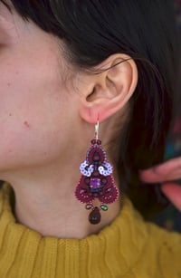 Pop Burgundy - Precieuses Boucles D'oreilles Brodées